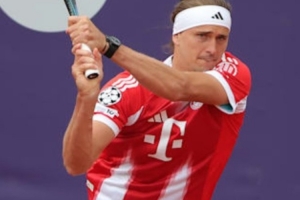 兹维列夫公开赛身穿奥利塞球衣,昨晚现场观战并前往更衣室祝贺